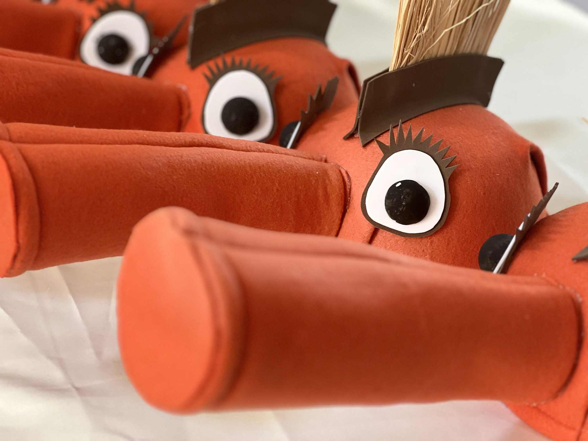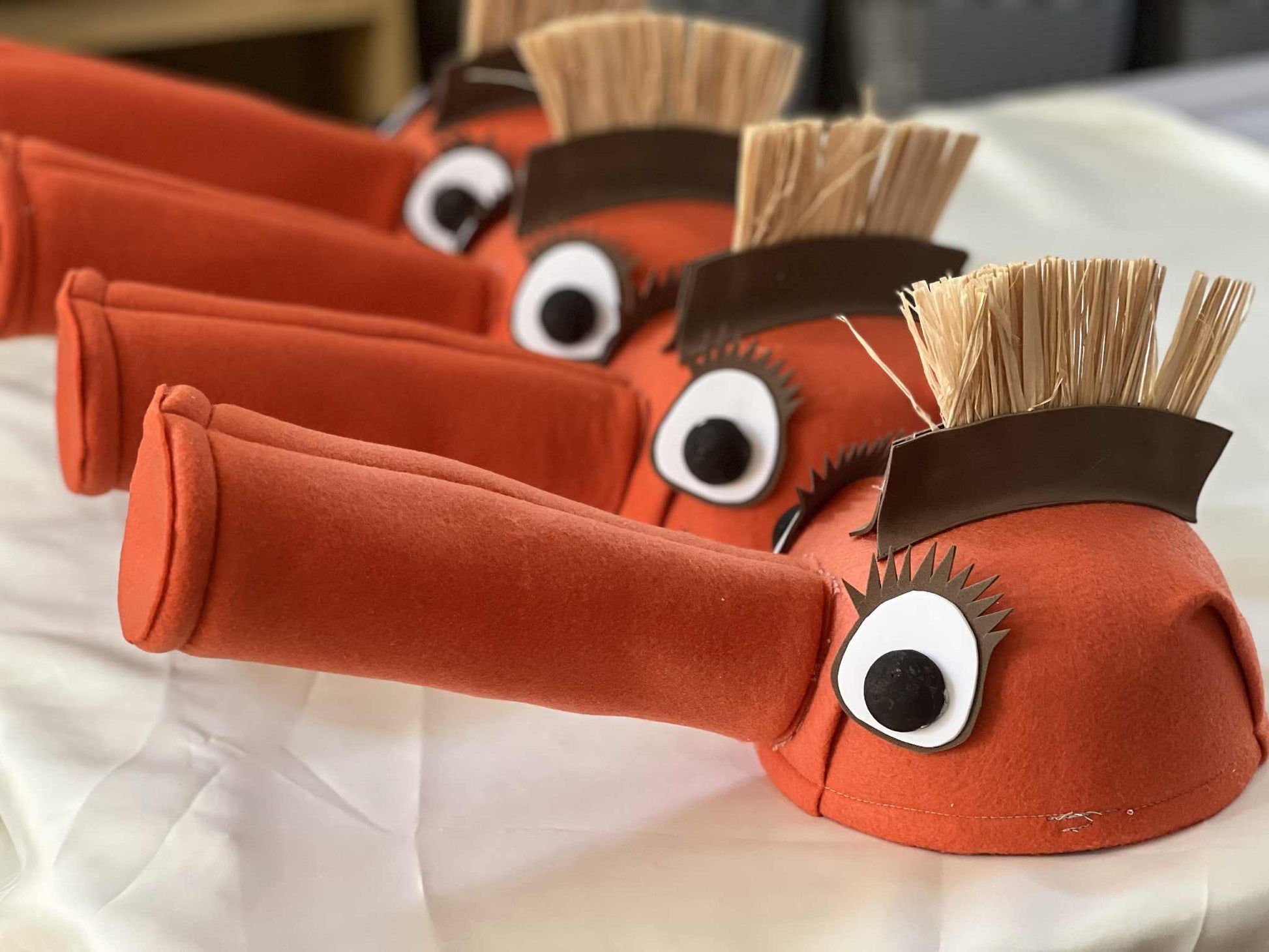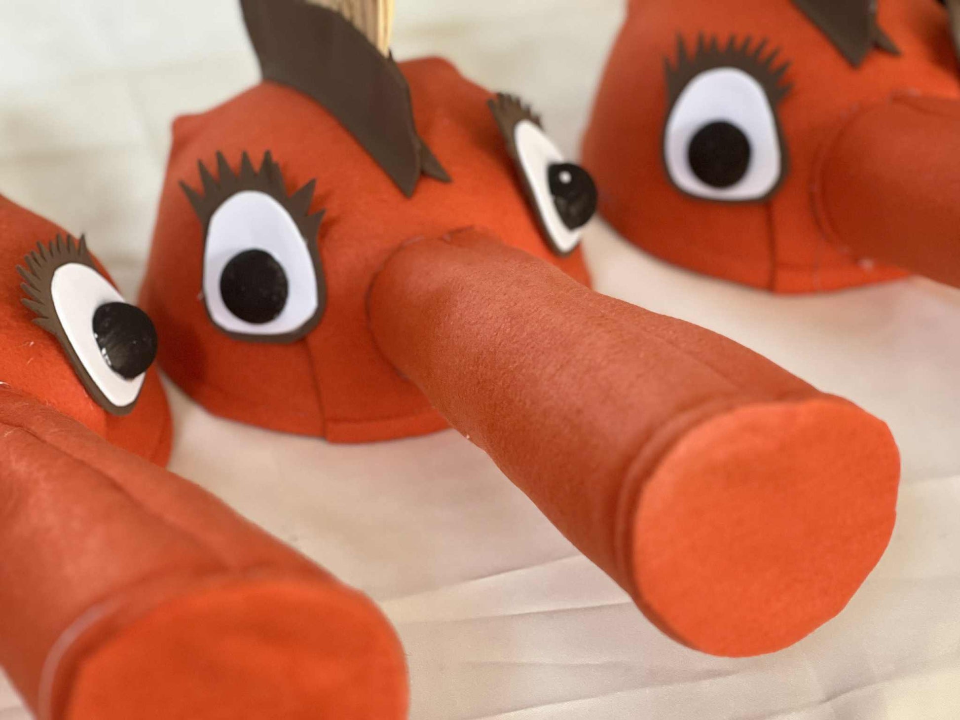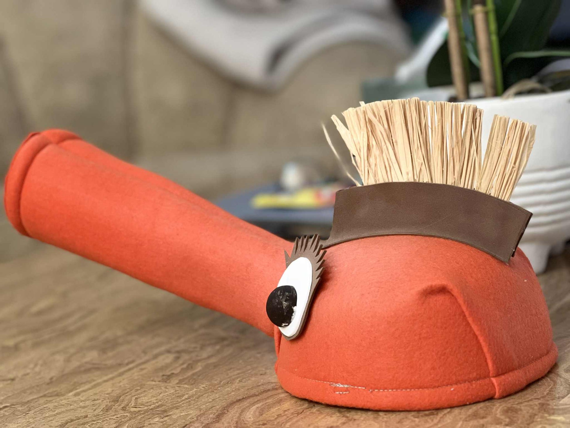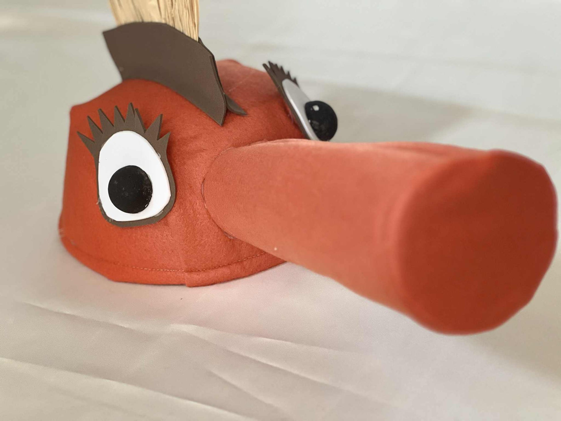 The costume features a textured fish-body design that adds depth and dimension under stage lighting, paired with a detailed character headpiece complete with expressive eyes and an extended trumpet-style snout for a bold theatrical effect. The structured yet lightweight construction allows comfortable movement during choreography, dialogue, and ensemble scenes.